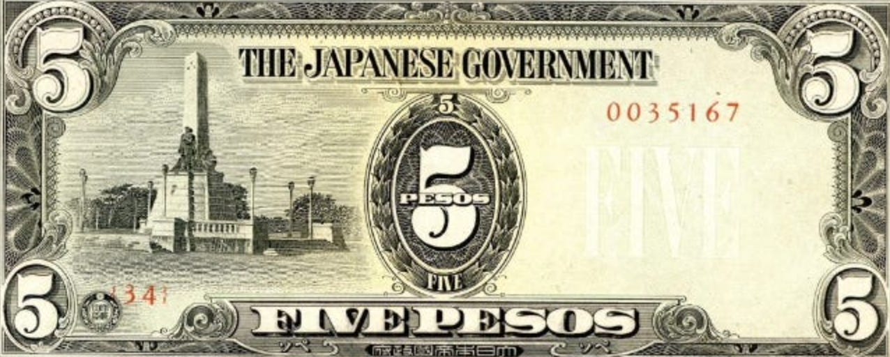 Nearing the end of WWII, Japanese issued currency in occupied Philippines became valueless, earning them the nickname “Mickey Mouse money”.